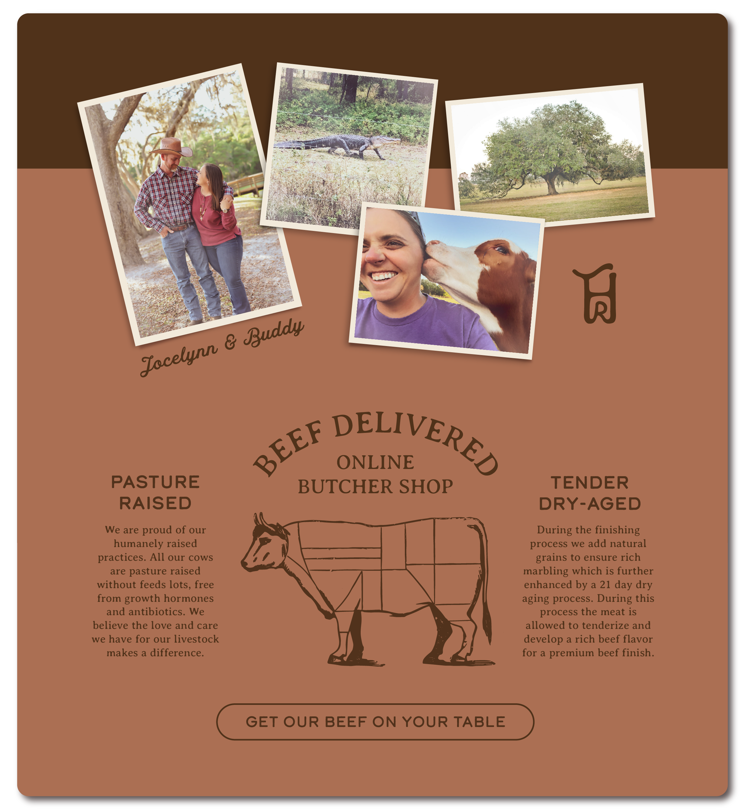 Tilly Hawk Ranch was founded by husband and wife duo Buddy and Jocelynn Lanier. They blend old time traditions with new management strategies to enrich the soil, offer their cattle a comfortable healthy life and raise finished beef that they are proud to put on the plate. Working with them has been a pleasure.